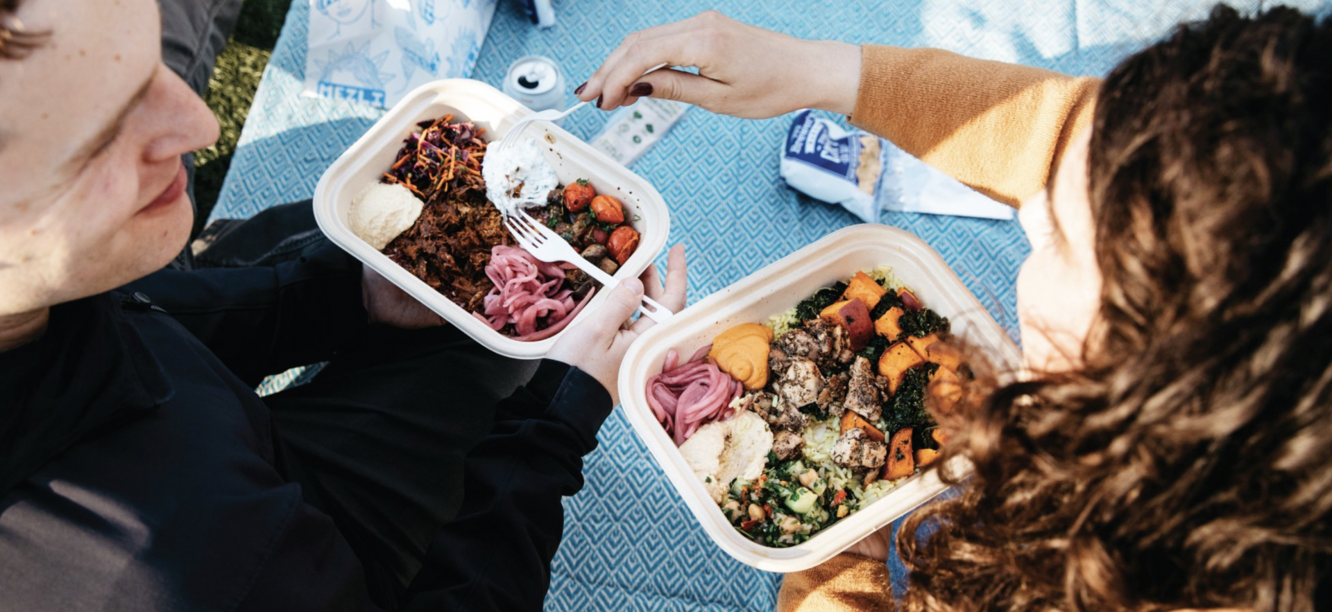 Customers place orders of customised Mediterranean food bowls at a bank of digital screens and a robotic production line heats the food and fills the bowl, which can be collected from a numbered locker. The only human involvement is a once-daily delivery of fresh ingredients into different compartments inside the system.