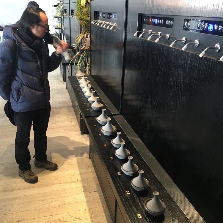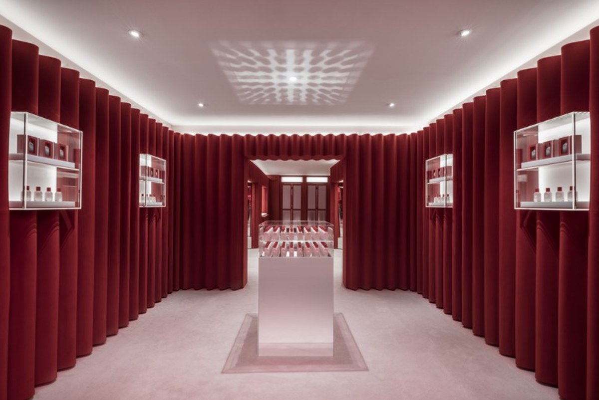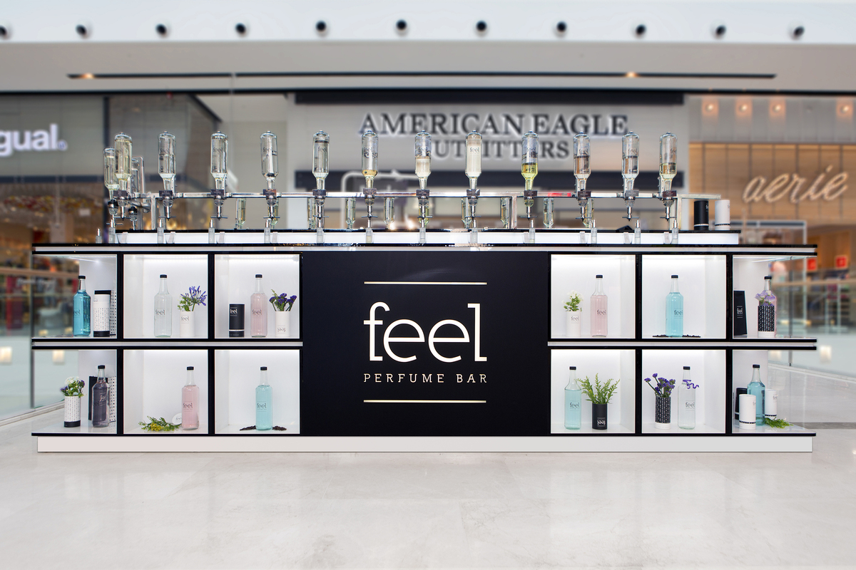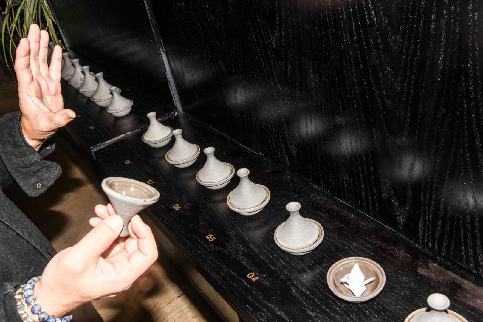 The concept, created by Mindy Yang, sees customers navigate the range on a “guided perfume flight” through the store, accompanied by an assistant who acts as a scent sommelier. The minimalist space features 32 fragrances on tap, which are labelled only by number. Underneath each tap is a small tagine containing a white paper swan soaked in the mystery perfume. The experience provides no clues as to the branding, packaging or price information of the scents. Fragrances on tap range from high-end limited-editions to celebrity-endorsed mass-market perfumes.