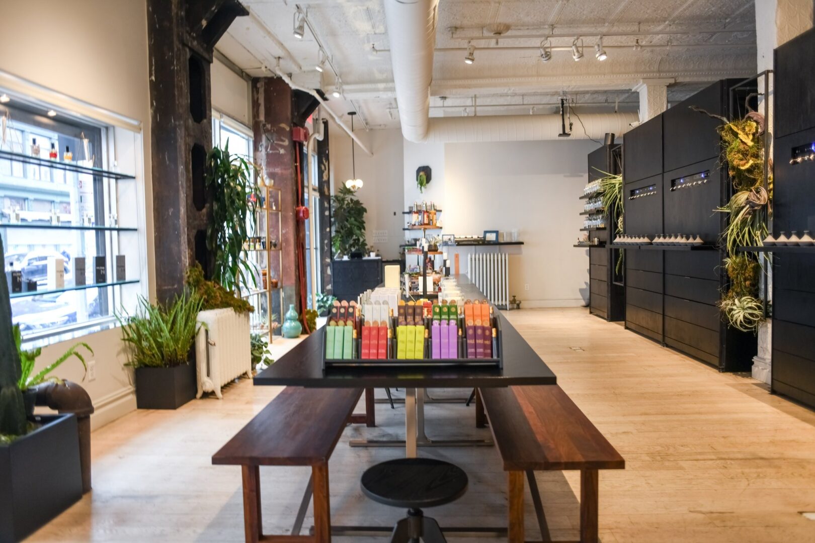 The first “Perfume flight” is free, after which customers are charged a fee of $20. Returning customers are invited to join the store’s Explorer’s Club. As a member of the club their scent notes and preferences are saved to a database for future reference. Other perks of becoming a member include a quarterly sample box of store-exclusive scents, and invites to events held around the store’s “gathering table,” where they can participate in discussions and scent workshops with the store’s master perfumer.