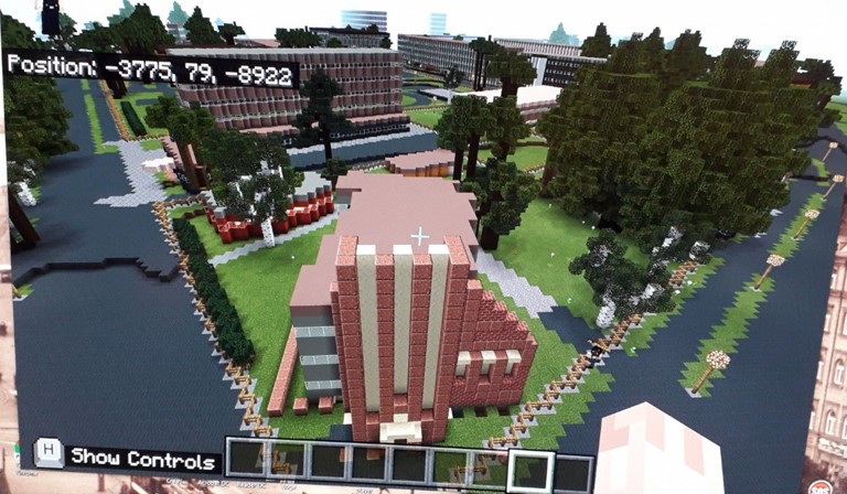 As part of an extracurricular pilot project, teams of students visited 20 existing buildings in the city centre including the Latvian National Opera and the Radisson Blu Hotel, and were given 12 days to redesign and reconstruct the building and its surroundings on Minecraft.