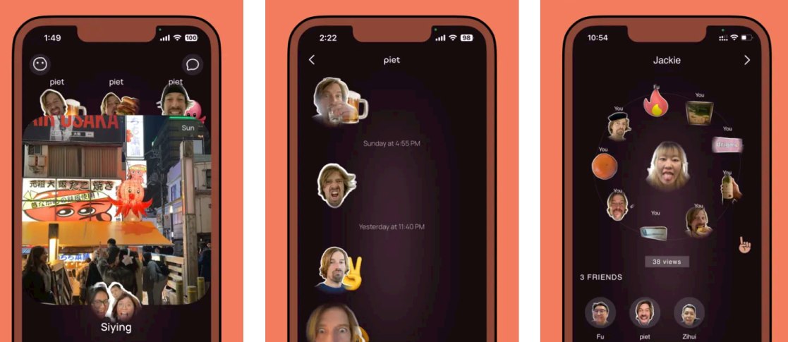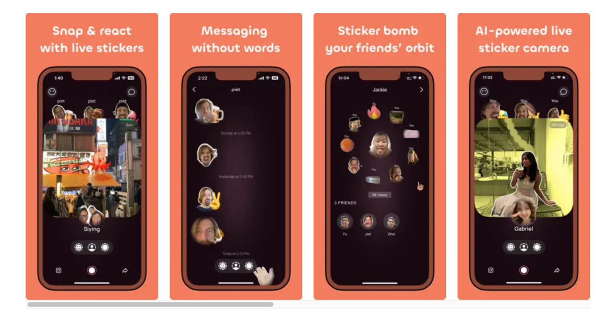 Again, there are no text messages available on the platform. Instead, users have a selection of AI tools at their disposal they can use to generate custom stickers. Anything the user takes a photo of on their phone can be made into a sticker – their face, their surroundings, a pet, a building, or any other object. Quick-fire editing tools allow users to add effects as well as mix and match combinations of imagery to create weird and wonderful visual collages and video clips.